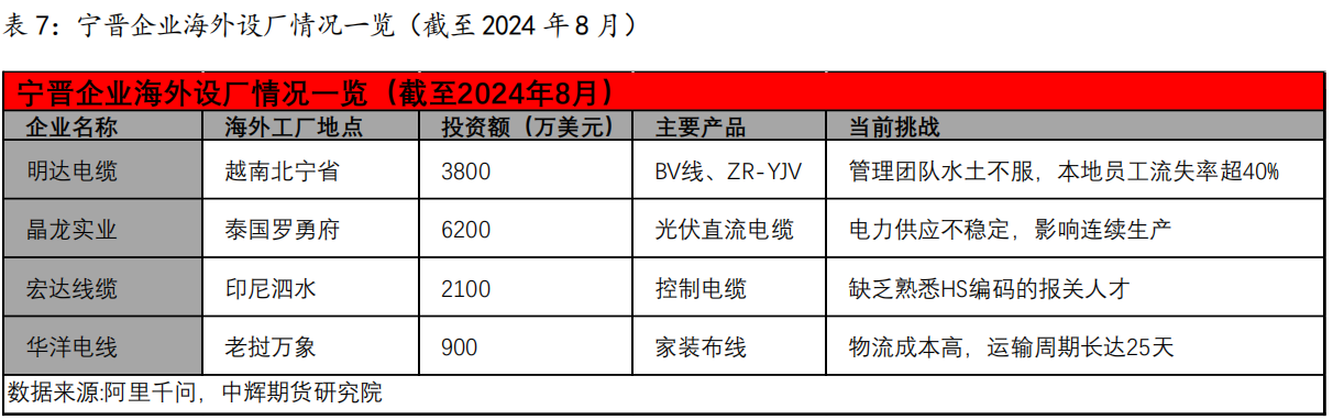 本次调研,中辉期货研究院在诚宏铜业召开中辉期货服务实体之电缆行业培训交流会,邀请县内龙头生产企业和贸易商共同交流,主题包括《当前宏观经济以及未来展望》,《有色金属企业套保应用分享》,《乘风破浪会有时,铜牛回头蓄力》。会上从宏观,产业,资本多维度分析铜价走势,引发企业热烈讨论和反响。 近期宏观暖风频吹,美9 月非农就业数据喜忧参半,美联储发布的经济褐皮书报告显示,消费支出进一步下降成为经济停滞的主要拖累因素。MIT 研究发现人工智能已经可以取代美国 11.7%的劳动力,科技霸权和硅谷精英主义或加速赛博朋克的 K 型社会的到来。美联储 12 月降息概率升至 85%,国内 12 月初政治局会议临近,市场对政策刺激预期走高,中美货币政策或共振,释放更多市场流动性。后续关注美国通胀数据和美联储议息会议落地。 基本面上,全球铜精矿供应紧张持续,海内外铜冶炼行业反内卷,中国有色金属工业协会再次发声,坚决反对任何免费和负加工费加工铜精矿行为。最新铜精矿TC 录得-41.72 美元/吨,环比下滑0.2 美元/吨。10 月中国进口铜精矿245.1 万吨 ,同比增加 5.9%,主要港口铜精矿库存最新报 70.49 万吨,环比增加 5.7 万吨。10 月冶炼开工下滑,电解铜产量环比下降 2.94 万吨至 109.16 万吨,预计 11 月继续环比下滑 0.4 万吨。近期铜价再次反弹,中下游加工企业积极逢低采购,终端消费,电力和汽车维持韧性,房地产和基建疲软。库存方面,全球交易所铜库存处于历史同期高位。上期所铜库存增至 11.06 万吨,LME 铜库存增至 15.65 万吨,COMEX 铜库存激增至 41.77 万吨,国内社会库存降至 17.35 万吨。COMEX 铜库存占比全球交易所总库存 60%,但是美国铜消费仅占全球铜总消费 7%,库存和需求错位,有局部铜库存堰塞湖隐患(传美铜库存被对冲基金锁定,难以回流欧亚市场)。 随着12 月美联储议息会和国内政治局会议临近,宏观暖风频吹,叠加国内社会库存淡季去库,短期铜高位震荡,价格中枢稳步上移,底部不断上抬,但也要警惕后续宏观利多出尽带来的高位回落风险。中长期战略多单可买入铜看跌期权对冲持仓风险。在趋势向上行情中,产业卖出套保根据现货库存,灵活降低套保比例,加速甩卖库存,高位落袋。产业买入套保根据生产订单,积极回调逢低建仓,锁定原材料成本。中长期看,铜作为中美博弈的重要战略资源和贵金属平替资产配置,在铜精矿紧张和绿色铜需求爆发背景下,对铜依旧看好。 第四章:出海阵痛,关税压力和规则风险 在实地走访企业过程中,我们注意到一个显著趋势,在中美关税对抗激烈的大背景下,部分龙头企业正尝试“走出去”,将产能布局至东南亚,以规避国际贸易壁垒。然而,这一战略转型并非坦途,反而暴露出企业在跨国运营、合规管理、供应链重构等方面的深层短板。 (一)中美关税博弈,行业规则风险黑天鹅 2023 年第四季度,宁晋某中型出口企业因承接美国某州电网升级项目,向美方出口价值 1.2 亿元人民币的阻燃电力电缆。货物分四批次通过海运发往洛杉矶港。但在第三批船即将靠岸时,美国海关依据最新修订的《进口电线电缆原产地追溯规则》(Origin Tracing Rule for Electrical Wires and Cables, 2023),要求提供全链条原材料溯源证明,包括:铜杆冶炼厂名称、地理位置;绝缘材料聚合工艺流程;成品出厂检测原始记录;工厂 ERP 系统生产日志截图。 由于该企业采用国内混合采购模式,部分辅料来自非备案供应商,无法满足美方“端到端可追溯”要求,最终三艘货轮被迫中途返航,仅运费损失就高达980 万元,加上仓储滞期费、客户违约赔偿,总损失逼近 1500 万元。过去“低价冲量、快速交付”的外贸策略已难适应欧美高端市场日益严苛的技术合规要求。 (二)“东南亚建厂热”背后的隐忧 为应对中美贸易摩擦和关税压力(美国对中国电线电缆征收7.5%–15%不等的反倾销税),多家宁晋企业选择在越南、泰国设厂,实现“中国技术+海外身份”出海。