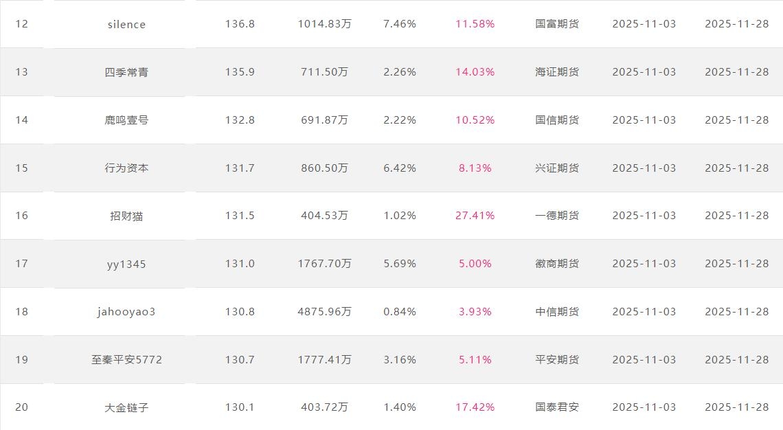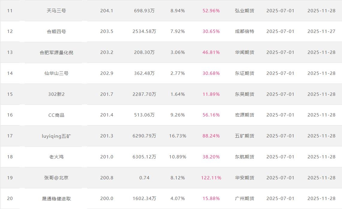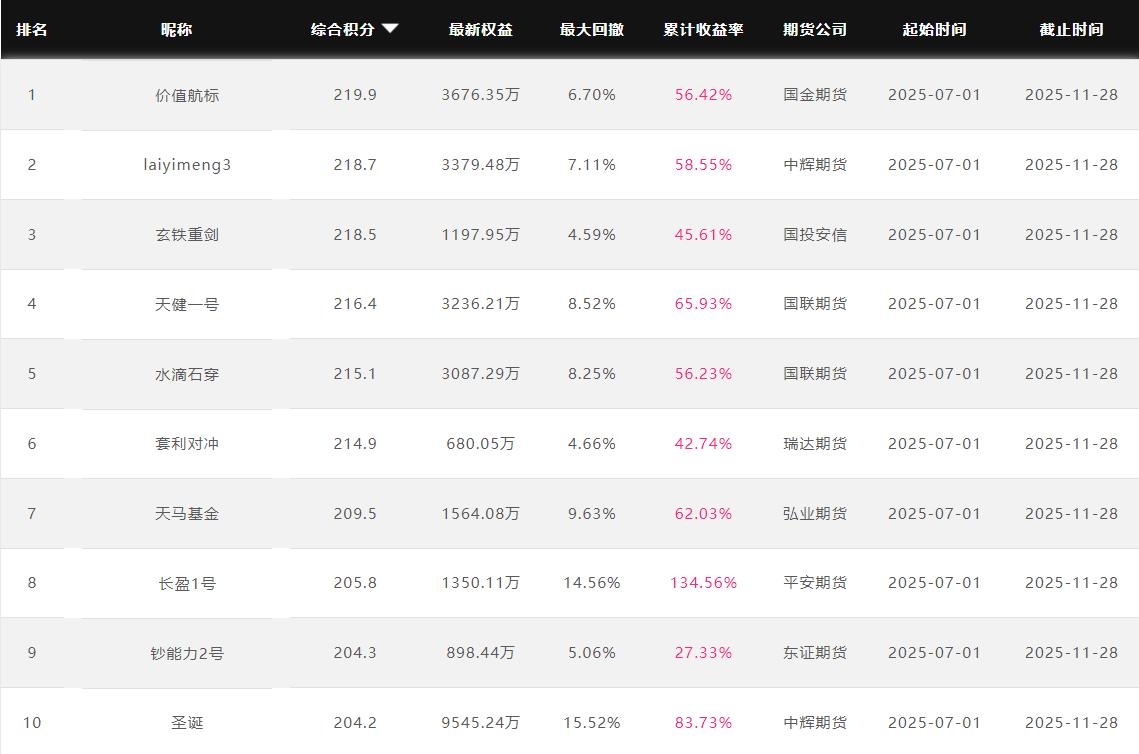 2025年11月【月度排名】(2025年11月1日-11月30日)