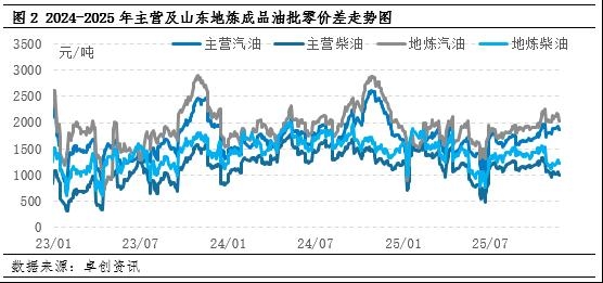 缺乏利好提振,贸易单位柴油库容率降低 本月下旬,原油价格整体呈现出震荡下行趋势,核心影响因素主要是欧洲和平谈判进展向好,地缘溢价继续回吐,而12月份沙特将继续增产也利空于原油价格走势。但是由于美国原油库存去库、美联储大概率降息以及欧洲局势谈判短期难以完成等情况影响,原油价格底部仍存支撑,因此价格震荡为主,均值环比下跌。受此影响,国内成品油零售限价于11月24日24时经历下调后,新周期的原油变化率仍处于负值范围内,国内市场观望情绪持续浓厚,业者对后市缺乏信心,进购意愿低迷。此外,虽然下旬国内部分地区柴油现货资源依旧偏紧,但是随着气温降低以及物流运输活跃度下降,国内柴油需求并无明显提升,因此需求不足抵消了资源偏紧的影响。缺乏利好提振的情况下,下旬贸易单位多消化库存、以销定进为主,大单进购操作较上旬明显减少,从而导致月底柴油库容率较中旬降低。 零售价格下调,汽、柴油批零价差整体收窄 价格方面,受原油价格震荡走低,国内成品油需求表现欠佳等因素影响,下旬汽、柴油批发市场价格整体呈现出震荡下滑走势。但是由于部分地区资源依旧偏紧,因此市场价格下跌幅度受限。零售价格调整方面,11月24日24时,国内成品油零售限价经历下调,因此在汽、柴油批发价格降幅有限,零售价格下调的情况下,本月下旬国内汽、柴油批零价差整体收窄,仅地炼柴油价格微幅扩大。
