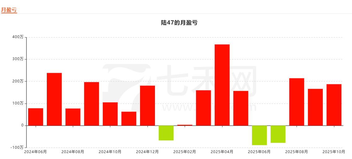从每月盈亏图来看,仅三个月亏损,其它月份都盈利,最高一个月盈利超367万元,最高一个月亏损超88万元。