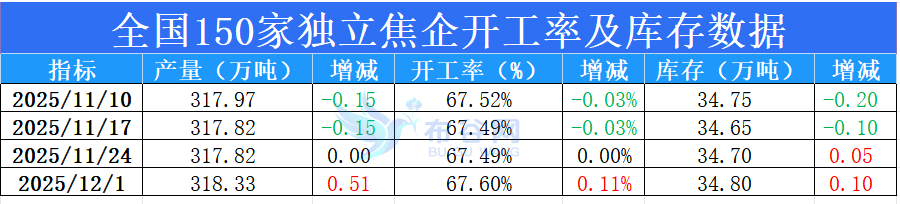 | 报告品种:焦炭 原文链接:https://mp.weixin.qq.com/s/nRV4-2yAcBdpqD6VydDLjw 独立焦企开工率及库存综述 焦企开工率回升 本期调研实际产量318.33万吨,较上期增加0.51万吨;产能利用率回升,本期开工率为67.60%,较上期上升0.11%;库存增加,本期焦炭库34.80万吨,较上期增加0.1万吨。
