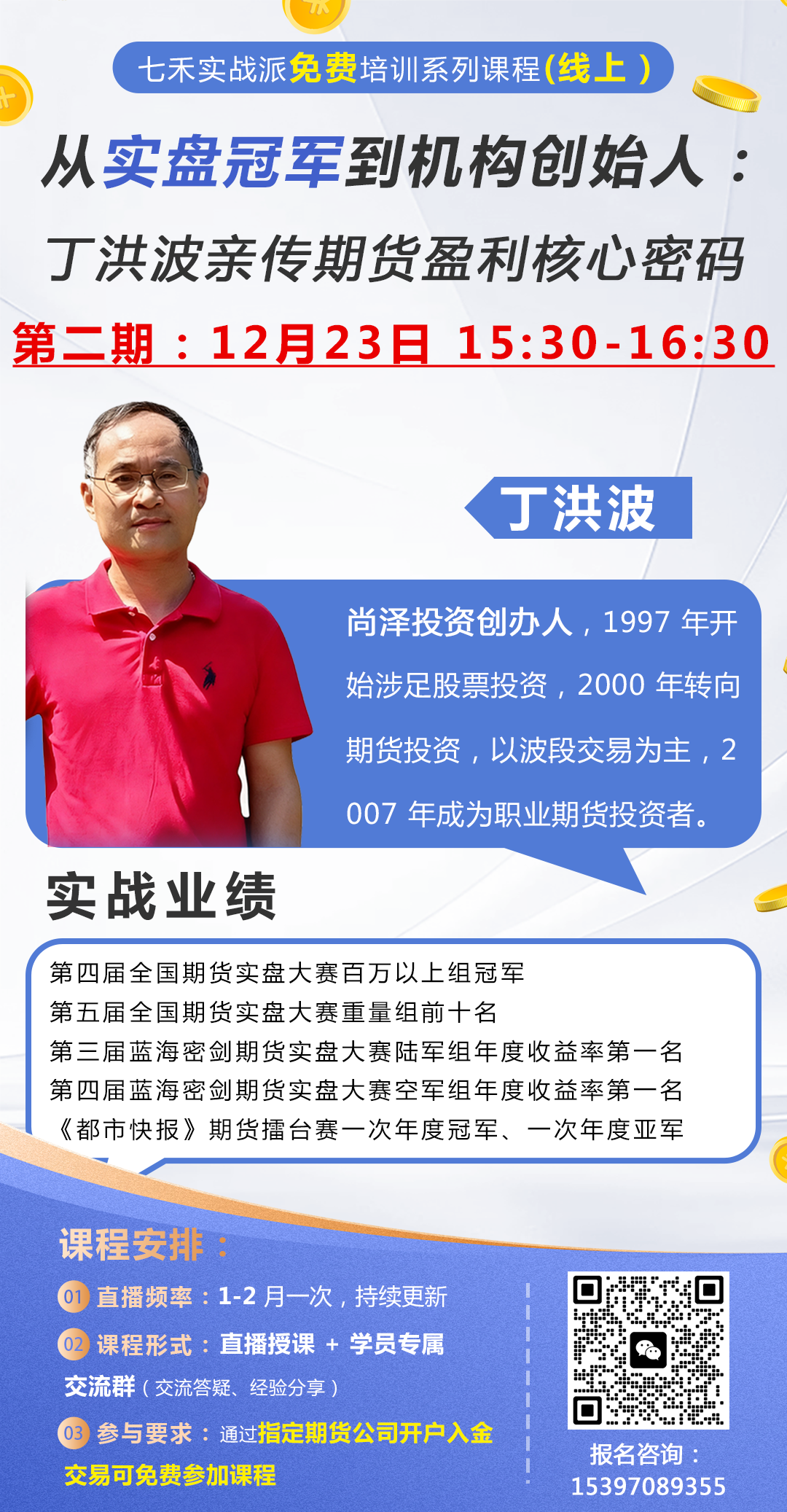12月23日,“期货冠军”丁洪波免费线上系列课程第二期