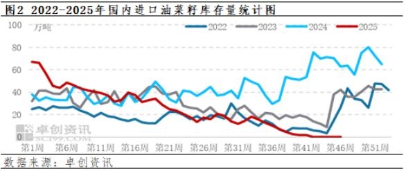 加拿大油菜籽供应收紧,国产油菜籽需求量上升 8月中旬中国商务部发布正式公告,认定加拿大油菜籽存在倾销,后期中国企业采购加拿大油菜籽需求向中国海关缴纳高额保证金。中加贸易关系紧张,对加拿大油菜籽出口影响较大,因为中国进口油菜籽主要来源于加拿大,且进口量较高,8月下旬开始,国内企业逐渐减少或停止采购加拿大油菜籽,国内进口油菜籽供应逐渐收紧,10月底国内进口油菜籽库存量也下降至0万吨。