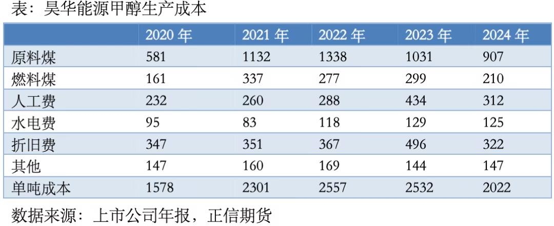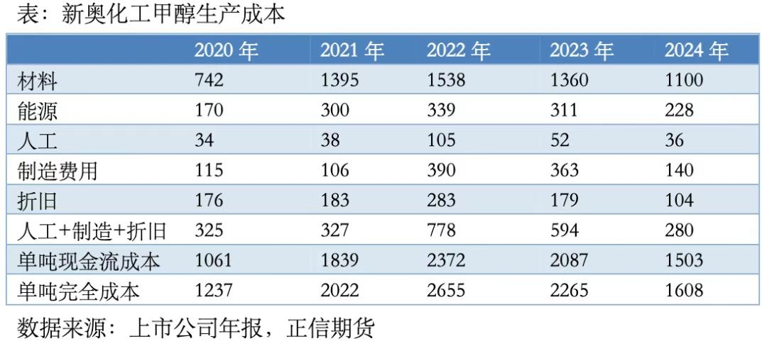 | 摘要 甲醇作为基础化工原料,是现代化工产业链的核心环节,广泛应用于聚烯烃、甲醛、醋酸、MTBE、二甲醚等产品生产。截至2025年12月,甲醇总产能10441.5万吨,煤制约占总产能的76.5%、焦炉气制约占总产能的13.7%、天然气制约占总产能的9.6%、二氧化碳加氢制约占总产能的 0.2%。我国甲醇生产工艺以煤制为主导,得益于煤炭资源丰富,天然气制甲醇占比相对较低,主要受国内天然气储量影响。 一、煤制甲醇成本结构分析——以新奥化工与昊华能源为例 我国煤制甲醇产能高度集中于煤炭资源富集的地区,主要包括内蒙古、陕西、山西和新疆等地。得益于原料就近获取的优势,多数企业依托集团内部自备煤矿或通过长协锁定煤炭供应,降低了原料成本,增强了抗波动能力。少数位于华东等非产煤区的甲醇企业需外购煤炭,受煤价波动影响较大,成本明显偏高。目前绝大多数煤制甲醇企业实现煤炭自给,仅个别企业仍依赖外部采购。 以新奥化工为例,其拥有两套煤制甲醇装置,合计产能120万吨/年,是典型的现代煤化工企业。其生产成本结构中,材料成本占比高达68.4%,其核心构成是煤炭,煤价的波动直接牵动整体成本。如,在2021至2022年煤炭价格高企期间,单位材料成本从1395元攀升至1538元;而到2024年已回落至1100元。能源成本占14.2%,主要包括电力、蒸汽及少量天然气等辅助能耗。其余约17%的成本则由人工、制造费用及折旧共同构成。