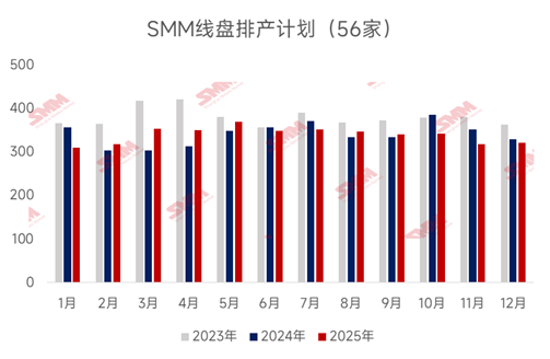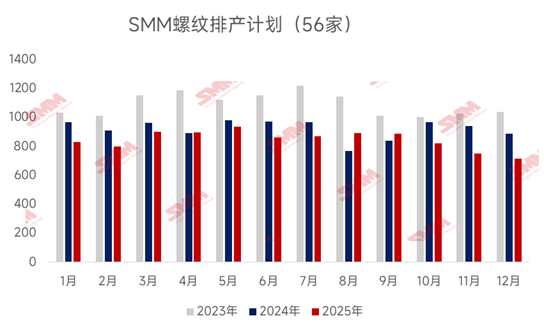 | 报告品种:螺纹钢 原文链接:https://mp.weixin.qq.com/s/dkgNowV68pOBs-aIZ_1lkg 据SMM调研重点生产钢企56个样本数据: 12月螺纹计划产量715.04万吨,较11月实际产量减少32.5万吨,降幅4.35%; 12月线盘计划产量321.33万吨,较11月实际产量增加3.3万吨,增幅1.04%。 12月样本钢厂长材出口排产量在58.65万吨,月环比增3.65万吨,其中钢坯出口排产量在33万吨。 图1-2:主流建材钢厂螺纹&线盘排产(56家)