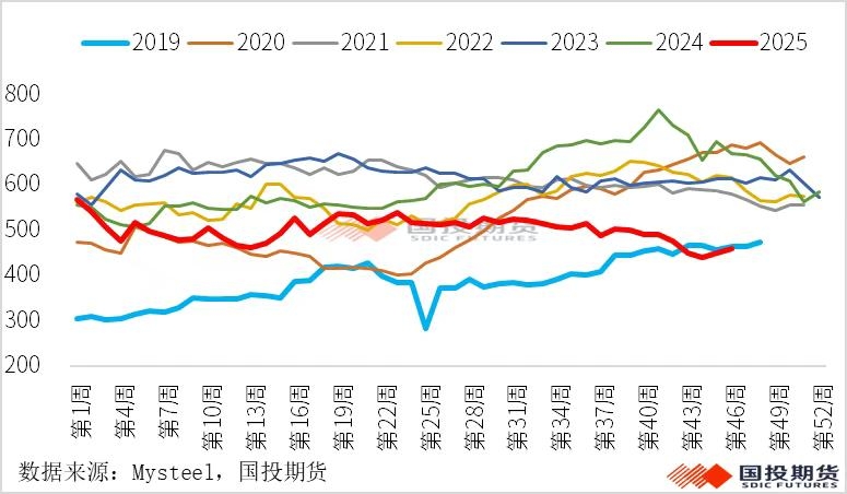 硅铁情况和硅锰类似,供应端开始减产时间较晚,虽然产量已经下行至季节性低点,但是需求端的疲弱依旧需要供应端更大幅度的减产才能匹配。 二、需求仍有韧性 从中钢协粗钢产量数据来看,今年前十个月粗钢产量同比去年下降0.72%,年内减产大概率在四季度显现。从铁水的角度来看,面临季节性下滑,也就是说铁合金主要需求面临着季节性下滑的预期。