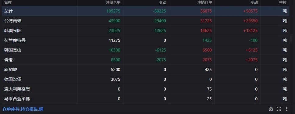 | 引言 12月3日,伦敦金属交易所亚洲仓库的注销仓单活动呈现显著波动,最新数据显示注销仓单量已达50725吨,创下2013年以来的最高水平。这一现象主要集中在中国台湾和韩国仓库,反映出亚洲地区现货需求的急剧变化。 一般情况而言,这种操作通常源于两种动机:一是下游制造业实际需求增加,需要立即使用原材料;二是贸易商预期未来铜价将继续上涨,选择暂时退出交易所库存体系。