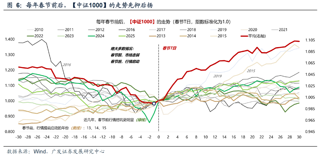 3. 26年的春季躁动大概率不会缺席 从过往的复盘表现来看,“春季躁动”缺失的情形主要有3种:(1)显著的政策因素、外部事件冲击。比如2014年注册制预期升温与美国退出QE、2016年熔断与减持新规、2017年金融监管趋严。(2)显著的流动性冲击。比如2021年初央行净回笼资金叠加美债利率快速上行。(3)显著的盈利下行周期。比如2014年、2022年。 展望2026年:上市公司盈利(边际改善)、内部政策与流动性(正面)、外部因素(中性偏正面) ,在这个组合下,“春季躁动”值得期待。 4.12月-1月阶段性留意红利、非银的表现;待产业催化剂出现、科技主线有望随时回归 12月日历效应支持红利、金融板块的跨年表现,结合近期非银板块的催化剂转暖,有利于修复25年非银行业基本面和股价的背离;此外,港股高股息资产也进入一年当中日历效应最强的阶段。 不过,在科技主线年报预告稳定、一季报延续高增的背景下,若产业催化剂出现,则产业主线有望随时回归,甚至领先于市场整体的春季躁动率先上涨。 责任编辑:七禾编辑 |