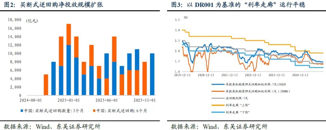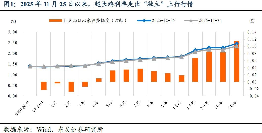 | 核心观点 事件 2025年11月底,在国债期货市场移仓换月、TL2603成为新晋主力合约之后,超长端利率因市场交易情绪走弱,掀起一波独立上行行情。以11月25日TL2603合约成为主力合约为起点,截至12月5日,30年期超长端利率累计上行8.3bps、50年超长端利率上行幅度更是达到11.55bps,而同期10年期利率仅上行1.8bps,3年期以内短端利率甚至有不同幅度下行。在超长端利率“独立”上行的带动下,30年与10年期限利差快速走扩至41bps。 与此同时,由于近期《金融时报》密集发布货币政策评论,引致市场认为货币政策基调变化是导致债券市场情绪走弱、利率市场下跌的主要原因。 核心观点 货币政策体系“科学稳健”不等于货币政策立场“稳健”。2025年12月4日中国人民银行行长潘功胜在《金融时报》上发表署名文章《构建科学稳健的货币政策体系和覆盖全面的宏观审慎管理体系》,其中提及“要始终保持货币政策的稳健性”,债券市场敏锐捕捉到这一信号并将其解释为货币政策不再设定为“适度宽松”,将时隔一年后再度定调“稳健”,推动债券市场对未来“降准降息”预期降温,但细究其实,人民银行对“货币政策体系”或“货币政策框架”的表述始终是“科学稳健”,并不代表“政策基调”或“政策立场”。 (1)货币政策基调“稳健”还是“适度宽松”?每年12月份的中央政治局会议和中央经济工作会议,均提及货币政策的取向,2024年12月货币政策措辞调整为“适度宽松”,一度激发利率非理性快速下行,提前定价高达30-40bps“降息”,然而正如同人民银行在2025年不同场合的阐释,货币政策措辞更多“是一种对于状态的描述”,并不代表未来的操作空间,“降准降息”的实施,仍然需要综合评估国内外经济金融形势和金融市场运行情况,进行相机抉择和动态调整。从人民银行秉承的政策取向思路出发,2025年中央政治局会议和中央经济工作会议对货币政策取向的表述,大概率延续“适度宽松”基调,以表现货币政策延续支持性立场,但并不预示着货币政策将大幅度宽松;即使政策取向措辞调整为“稳健”,也并不代表货币政策“收紧”。取向措辞更多是对当前状态的描述。 (2)货币政策体系“科学稳健”。2025年10月24日人民银行在传达学习二十届四中全会重要讲话和全会精神时即指出“构建科学稳健的货币政策体系、健全覆盖全面的宏观审慎管理体系和系统性金融风险防范处置机制、持续深化金融供给侧结构性改革、稳步推进金融高水平开放”等五大重点工作,此后的2025金融街论坛、二十届四中全会精神宣讲报告会等重要场合,均是“科学稳健的货币政策体系和覆盖全面的宏观审慎管理体系”双支柱并提。相比于债券市场聚焦的“降准降息”等逆周期总量宽松工具,货币政策体系“科学稳健”不仅包括对政策取向的定性宣示,更包括货币政策制度框架的设计,涵盖基础货币投放机制、市场利率调控机制、结构性政策工具体系、人民币汇率机制和货币政策传导机制等五个重要方面,相比于对货币政策取向的定向描述,货币政策体系的“稳健性”更属于金融制度基础设施,覆盖的周期和维度更加多样和全面。 因此货币政策体系“科学稳健”的提法并不预示货币政策取向,2024年6月份陆家嘴论坛开启新一轮利率走廊重塑和利率传导机制设计以来,货币政策框架/体系即处于“科学稳健”的范畴。2025年中央政治局会议和中央经济工作会议对货币政策取向的定性,还有待会议通稿揭晓。 如何理解流动性投放“收短放长”?一度引发债券市场预期混乱的还有《金融时报》于12月3日发表的《收短放长 央行“组合拳”呵护流动性》,由于本文发表于3日晚间,对利率市场的影响迟至4日和5日显现,然而此“收短放长”并非10年前的含义。2016年由于通胀率回升、经济增长在出口和地产双轮驱动下稳中向好,货币政策开始拉长资金投放期限、抬升资金成本、引导短端资金利率上行,以达到抑制资产泡沫、金融防风险的目的,这一操作风格延续至2018年,但是2025年11月以来的“收短放长”显然与近乎10年前的操作并不同义。 2025年以来,人民银行构建起“逆回购调节短期流动性、MLF和买断式逆回购调节中短期流动性、降准调节长期流动性、国债买卖做有效补充”的流动性期限框架,在这一更加科学稳健的框架体系下,货币政策会根据流动性供需情形进行不同期限的工具搭配。 从资金利率市场运行状况来看,5月份“降准降息”落地以来,DR001和DR007平稳运行,货币市场利率围绕主要政策利率平稳运行,11月25日至12月5日,DR001甚至有2.32bps的小幅下行,在短端货币市场利率平稳运行的情况下,继续滚动续作7天期逆回购的需求降低,而短中期和长期资金需求却始终未减,从同业存单利率来看,11月25日至12月5日,3个月期和6个月期AAA同业存单分别上行4.50bps和2.50bps,7天期逆回购资金难以满足长期限资金需求,3个月期和6个月期买断式逆回购逐月放量,9月份以来买断式逆回购净投放量持续扩张,11月份买断式逆回购净投放量达到5000亿元,尽管对于金融体系的负债端而言,3个月和6个月资金仍然偏短,但这种“收短放长”操作是不同期限流动性工具的灵活搭配,并不意味着资金利率边际抬升。 超长端利率因何“独立”上行?我们在11月发布的2026年度展望报告中曾提出2026年银行体系面临“资产端继续承接长久期政府债供给、