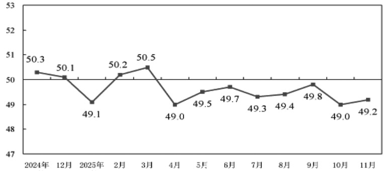 | 近期随着外围市场不确定因素的消退,股指期货开始修复性反弹。从A股市场表现看,工业金属、航天设备、工程机械等顺周期板块较为活跃,与有色金属等大宗商品价格上涨形成共振。从基本面看,美联储12月降息的预期不断强化,极大地提振了市场情绪和风险偏好,欧美股市持续回暖,市场对科技股泡沫破裂的担忧阶段性缓和。国内方面,官方制造业PMI小幅反弹,工业生产有所加快,需求边际改善,但尚未摆脱收缩区间。中共中央经济工作会议召开的时间窗口临近,市场期待更多稳增长政策出台。 近期公布的宏观数据显示,今年11月官方制造业PMI录得49.2%,较上月回升0.2个百分点。从企业规模看,大型企业PMI由49.9%降至49.3%,连续两个月低于临界值;中、小型企业PMI分别为48.9%和49.1%,较上月分别回升0.2和2个百分点。从分类指数看,生产指数由49.7%上升至50%,重返扩张区间;新订单和新出口订单指数回升至49.2%和47.6%,较上月分别加快0.4和1.7个百分点。整体看,官方制造业PMI尚未摆脱收缩区间,工业生产明显加快,但外需下行压力依然较大,中、小型企业景气度仍待提升。表明我国经济发展呈现不平衡性,生产强、需求弱和服务业强、制造业弱的特征依然较为明显。