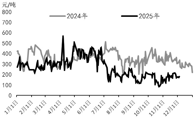 图为PTA现货加工费 原油市场上下两难 最近几个交易日,油价震荡运行。全球原油库存不断累积,原油市场处于供应压力最大的阶段。不过,短期地缘因素将继续带来扰动,俄乌和平谈判距离达成一致还有一定距离。总体来看,原油仍将维持拉锯的震荡格局。 供应收缩幅度不大 最近,PTA行业延续低加工费格局。截至12月5日,PTA加工费为194元/吨,处在历史低位。PTA加工费低位运行主要是由于上游PX供应持续偏紧,挤压了PTA环节的利润。PTA供应减量不大,最新行业开工率在73.7%左右。 PTA低加工费已经持续较长一段时间,不过由于PTA行业上下游一体化程度较深,PTA开工率对单个环节亏损程度的敏感性大幅降低。部分生产企业配备PX装置,目前PX环节盈利较好。此外,也有不少生产企业配备聚酯装置,聚酯大部分品种目前也是盈利状态。因此,短期来看,PTA供应收缩幅度并不大。 消费逐步进入淡季 进入12月,终端织造需求进入季节性回落阶段。截至12月5日,江浙加弹综合开工率升至85%,江浙织机综合开工率升至69%,江浙印染综合开工率基本维持在74%,较11月高点已经明显下移。受终端需求季节性回落影响,下游补库节奏明显放缓,聚酯工厂库存连续几周出现累积。虽然短期聚酯负荷韧性仍存,但难以继续提升,预计明年1月以季节性回落为主。届时聚酯对原料刚性需求将减弱,从而会对PTA价格构成一定压力。 综合以上分析,目前原料端原油上下两难,低位震荡,难以对下游PTA产生方向性指引。从PTA自身基本面来看,尽管加工费处在低位,但低估值并没有带来明显的供应减量,而需求端逐步进入季节性回落阶段,对上游原料的刚性需求支撑将减弱。PTA存在一定累库预期,价格上方亦有压力,预计后市维持震荡格局。 责任编辑:七禾小编 |