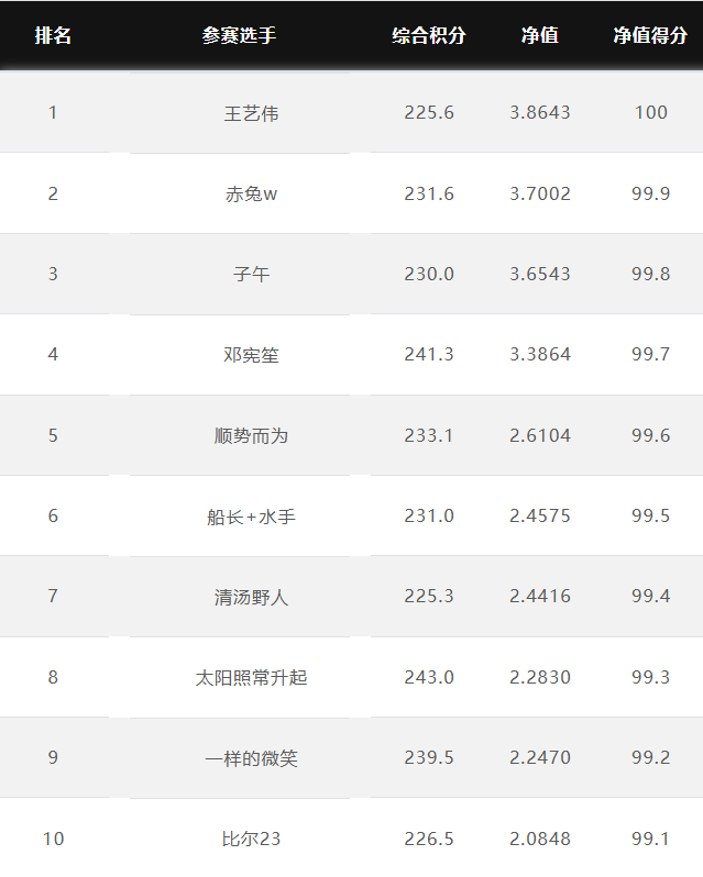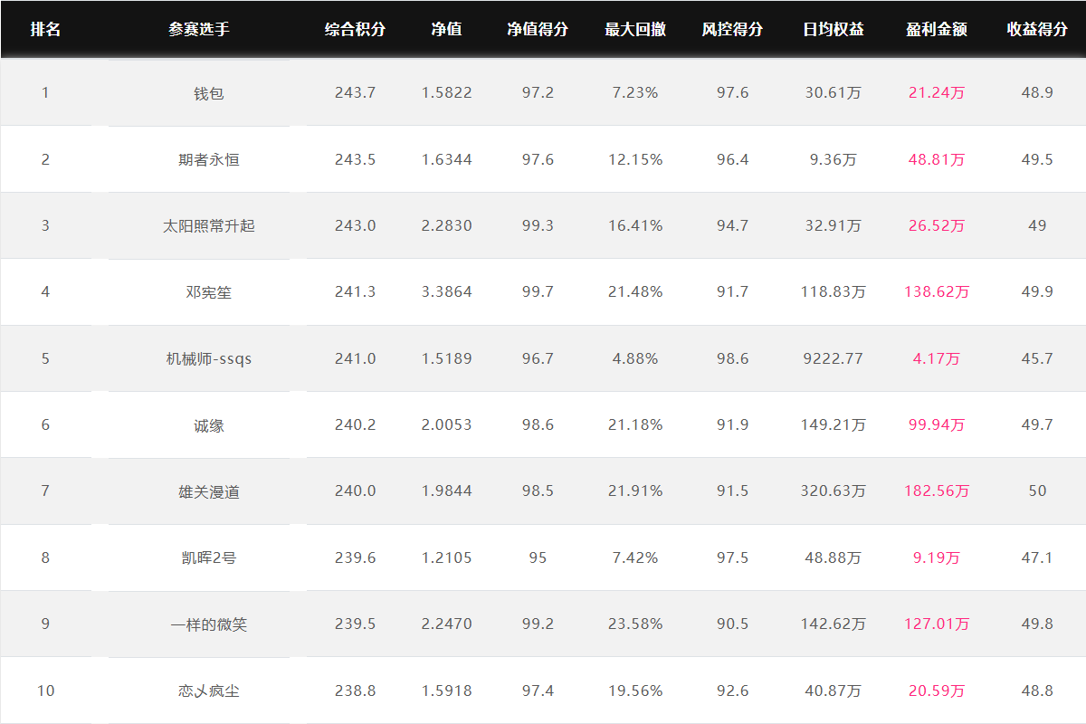 大赛净值排名前10名 2025.12.9