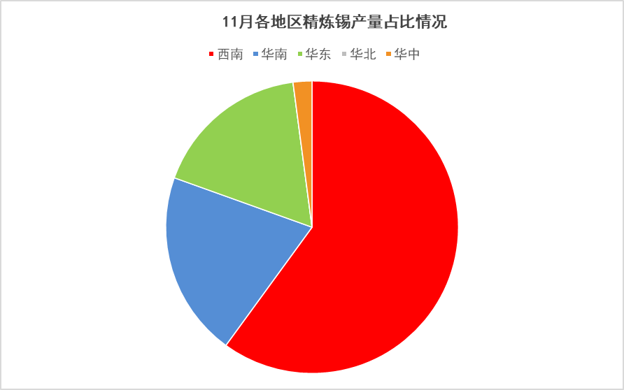 从分地区产量表现来看,本月各地区产量呈“维稳小涨”态势:华中地区领涨市场,产量环比上涨35.14%;西南、华南、华东地区紧随其后,环比涨幅分别为23.97%、5.56%、2.81%;华北地区因炼厂检修产量有所下滑。产量回升主要得益于云南、广西大部分冶炼企业维持且稳定生产,华北个别炼厂因检修停产,其他地区产能释放相对平稳。