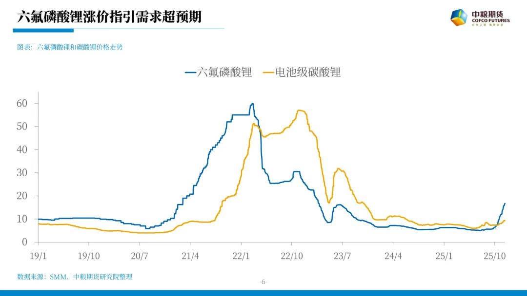六氟磷酸锂凭借其在产业链中的短库存周期优势、稳定的高集中度产业格局,以及与下游 1-2 月生产节点的联动性,其价格及需求信号不仅能反映自身供需,更可能预示下游需求存在超预期释放的可能性,因此成为判断锂电下游需求趋势的关键指引指标。