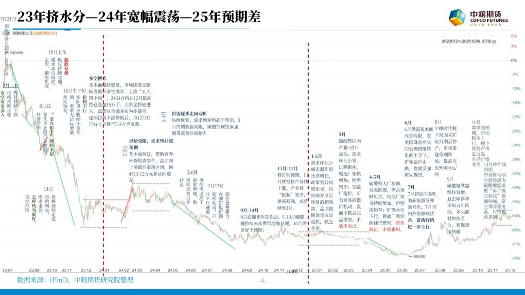 政策市属性未变:需求端对补贴、购置税减免、资源税/矿权政策极度敏感。 周期位置:仍处于“挤水分后”低位宽幅震荡区间,大级别反转需看到2026年后供给再平衡,当前只做“周期中的短错配”交易。 宜春矿权事件:短期停产暂歇,但补缴权益金、矿权整合未落地,2027年前仍有反复。可持续跟进。