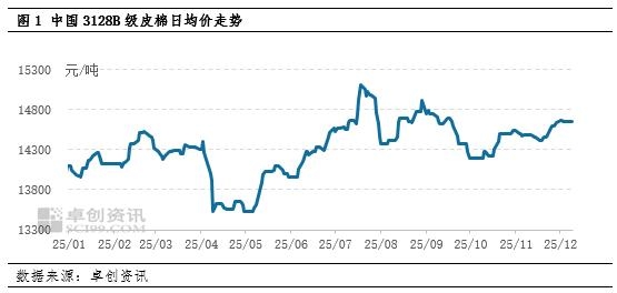 | 【导语】随着籽棉收购结束,收购成本逐渐固化对价格形成支撑,另外轧花厂销售积极性较高,皮棉销售进度快,套保压力逐步消化,需求端因中美贸易取消关税,棉花需求预期偏乐观,11月下旬以来棉花价格再次上涨。基于供需面向好表现,预计12月中下旬至2026年3月国内棉价将延续震荡上涨走势。 供应旺季,棉价逆势上涨 新棉集中上市期,市场交易的主要逻辑在供应端,今年新棉上市期价格逆势上涨,主要利多来自籽棉收购价格上涨以及中美贸易关系阶段性缓和带来的需求预期好转,10月中国棉花价格震荡反弹。11月轧花厂皮棉销售顺畅,卖压明显下降,支撑11月下旬棉价再次上涨。据卓创资讯监测,12月10日,中国3128B级皮棉现货上涨至14647.50元/吨,较10月初上涨459.50元/吨,涨幅3.24%。