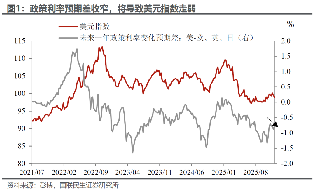 | 最近几年,站在年末看下一年的美元走势很容易出错。以去年年底为例子,特朗普意外横扫、重回白宫之后,市场情绪亢奋,在经济过热、通胀上行预期的指引下,多数人认为美元会延续强势,结果今年美元在1月就见顶,年内最多跌超10%。如果站在今年年底来判断,美元偏弱可能是明年的基本情形。如果明年美元有再次违背预期的可能,那么什么原因可能导致明年美元意外升值? 首先,我们看看为什么市场认为明年美元会偏弱?没有了美国例外论的光环,市场会更加客观地看待美国和非美之间的关系: 一是美国货币政策很可能会更加宽松,进而导致美国和主要非美发达国家利差收窄,使得美元贬值。这一点目前看起来似乎不是“空穴来风”,其中日本首相已经“明牌”财政宽松,为了应对通胀风险,日央行行长植田和男发表“鹰”派言论,市场预期12月日央行加息的概率骤升;欧洲央行在财政可能扩张的背景下,对于降息也比较谨慎。 反观美国,明年大宽松的可能性似乎是最大的。特朗普持续引导降息预期;当前在美联储主席竞争中领先的白宫国家经济委员会主任哈塞特也是低利率的“信徒”。