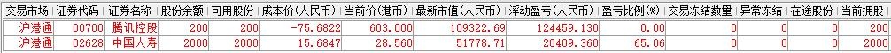 | 账户初始资金:100000.00元 2015年5月18日入金:32000.00元 2015年5月29日入金:9000.00元 2015年6月23日入金:20000.00元 2015年6月26日入金:10000.00元 2015年6月29日入金:20000.00元 2015年7月3日入金:20000.00元 2015年7月8日入金:10000.00元 2016年1月12日入金:90000.00元 2016年1月22日入金:100000.00元 2016年1月27日入金:100000.00元 2016年3月21日出金:270000.00元 2016年4月12日出金:35639.23元 2016年0月10日出金:56913.08元 2016年10月28日入金:60000.00元 2017年3月7日出金:113800.00元 参考市值:177204.40元 账户资产:177610.07元 截至今日账户A股盈亏:-46786.36元 截至今日账户港股盈亏:139801.07元 账户净值:1.988 资金股份
