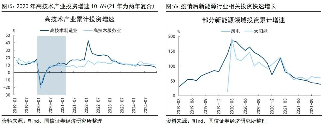 2020年:疫情冲击下的“新动能”突围。2020年春我国经济按下“暂停键”,固定资产投资停滞,单月增速一度下跌至-24.5%。随着逆周期调节政策的发力,复工复产有序推进,全年投资增速收正(2.9%)。