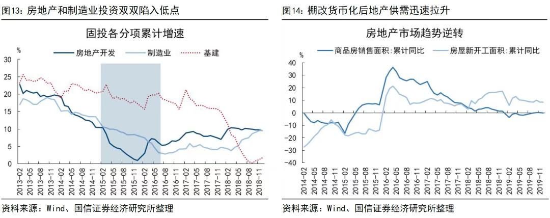 2015年:供给侧结构性改革+棚改货币化。这一低谷主要是“三期叠加”下地产市场的快速降温所致。2014年,国内房地产库存压力显现,上下游产业链供需矛盾加大,导致房地产与制造业投资共振下行。 面对这一局面,政策从供需两端同时发力。供给端以“三去一降一补”为核心推动结构性改革,通过整合产能、优化结构,提升行业盈利水平;需求端则围绕地产,通过棚改货币化定向拉动购房需求,最终实现“涨价去库存”。“一推一拉”之间,投资和经济企稳回升。地产投资增速从2015年12月1.0%的低点回升至2018年3月的10.4%,总投资增速的急跌也得以扭转,稳定在6%附近。 与上一轮“大包大揽”不同,这次政府更为克制,仅以“合伙人”身份参与部分环节。一方面通过棚改货币化,在拉动住房需求的同时激活土地供给,推动地产投资回升;另一方面引导地方建设聚焦民生配套,并借助PPP模式撬动社会资本,进一步拉动投资。这种前置性刺激延缓了房地产行业的拐点,并在短期内提振经济,却也将阶段性调整压力进一步累积,为后续的改革和调整带来更多挑战。