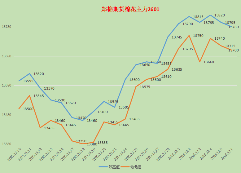 9、棉花:郑棉CF2601主力合约在13660~13820之间窄幅震荡,预计短期内仍以区间震荡为主。新疆新棉采收基本结束,轧花加工接近70%,总体成本在13800~14300元/吨左右不等。新疆棉花创历史丰产,目前新棉加工检验集中上量、上市,持续压制现货价格。