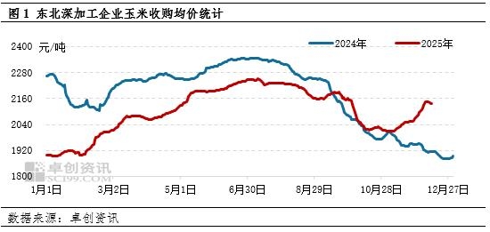| 【导语】11-12月东北深加工企业玉米收购均价涨幅明显,主要受到市场上量缓慢、需求增加的驱动,企业盈利下降甚至亏损,市场价格上涨乏力,但企业仍有建库需求,且对玉米是刚需,需求端对价格存支撑作用。预计12月下半月东北市场玉米价格主线稳定,市场情绪是关键影响因素。 11-12月份东北深加工企业玉米收购价格涨幅明显 11月份以来,东北深加工企业玉米收购价格整体保持上涨趋势,与去年同期走势相背离。卓创资讯监测数据显示,截至12月12日,东北产区样本深加工企业玉米收购均价为2136元/吨,较11月初上涨128元/吨,涨幅6.37%。根本原因是产区供应增量缓慢,深加工企业因结转库存偏低、新粮有成本优势而积极采购。除此之外,华北市场饲用玉米存在供应缺口,大量东北玉米外流,一定程度上加剧了东北玉米的供应紧张程度。