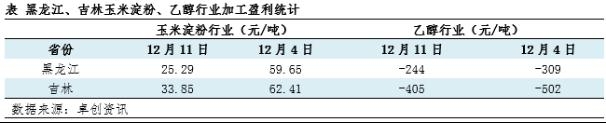 从成本来看,玉米作为深加工企业的主要成本,其价格上涨带动淀粉价格走高,但产品价格涨幅有限,东北企业生产盈利明显缩减,酒精行业亏损较重。卓创资讯监测数据显示,截至12月11日,黑吉玉米淀粉行业加工盈利为25-34元/吨,环比降幅46%-58%,且处于行业内最低水平;乙醇行业亏损达到244-405元/吨,企业经营压力明显提升。受地域条件限制,东北加工企业替代品的经济性较差,对玉米是刚性需求,对价格仍有一定支撑作用。
