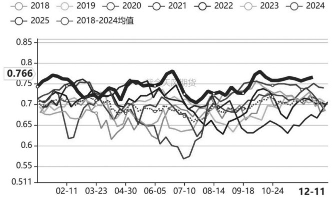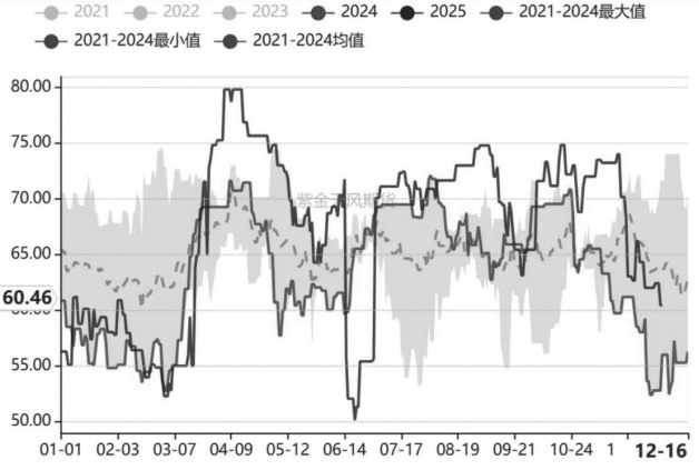 图为海外甲醇装置开工率(单位:%) 需求有韧性 传统下游方面,四季度传统下游开工率逐渐走低,需求季节性转淡。具体来看,新装置投产叠加计划检修导致醋酸装置开工率下滑,其对甲醇的需求有所回落;其他下游开工率小幅回落但影响不大。今年传统下游需求增长的逻辑仍在,全年传统下游需求韧性较强。 烯烃方面,近期部分装置生产计划有调整。阳煤MTO装置11月底停车,12月初已经重启;宁波富德MTO装置上周停车,计划停车40到50天;联泓MTO新装置上周开车,近期逐渐提负。整体来看,当前烯烃开工率变动不大,随着富德MTO装置重启和新装置投产,烯烃需求预期有望好转。 库存压力不大 近期,港口甲醇高库存压力明显缓解。尽管11月伊朗甲醇装船量大幅增加,但从近几周的数据来看,卸港速度明显弱于预期。卸港偏慢的原因包括主流港口对伊朗货船存在接货限制、超龄货船禁止停靠以及阶段性封航等,短期卸港偏慢的情况可能持续,预计港口短期继续去库。从预期来看,伊朗多数装置已经停车,预计12月下旬装船量逐渐减少,国内甲醇进口量明年1月开始明显减少,国内库存拐点或出现在明年一季度,后期需重点关注伊朗装置重启时间。 内地企业库存自10月以来逐渐累积。随着国内检修装置逐渐重启,今年传统下游“旺季不旺”导致内地库存小幅累积。近两年传统下游新装置陆续投产,但甲醇装置投产数量不多,导致内地供需呈现紧平衡状态。当前,内地企业库存处于近年来最低水平。在甲醇新增产能受限以及下游新装置持续投产的背景下,预计未来一段时间内地库存压力不大。 后市展望 整体来看,四季度国内甲醇价格波动较大,前期伊朗装置停车带来的进口下降预期推动价格大幅反弹,但近期受货源充足、主力移仓换月以及化工板块偏弱等因素影响,甲醇期货远月合约大幅下跌。 展望后市,伊朗装置停车、库存持续去化、国内供应下降等因素为甲醇价格带来了有力的支撑,但下游生产利润不佳限制价格上行高度。 责任编辑:七禾小编 |