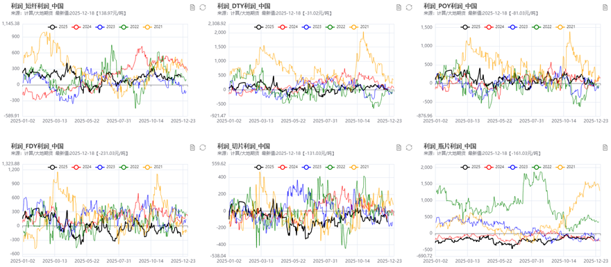 数据来源:钢联、大地期货研究院 原料端的大幅上涨,导致聚酯产业链利润集中在PX端,PTA和下游聚酯工厂利润表现较差,目前聚酯产品中除短纤利润尚可,长丝以及片材都处于亏损的境地,但利润转差仍然不足以迫使聚酯厂家提前进入检修季,当前聚酯工厂库存、下游纺织企业成品库存和原料库存都不高。聚酯大厂近期促销之后,库存压力得到有效缓解,在“买涨不买跌”的市场氛围下,下游拿货积极性提高,聚酯工厂库存仍然可以向下游顺利传递。我们认为,在聚酯库存没有显著积累的情况下,聚酯工厂缺少大幅降负荷的条件,PX和PTA偏紧的矛盾也就无法得到有效解决,投资者尽量减少摸顶的行为。 责任编辑:七禾编辑 |