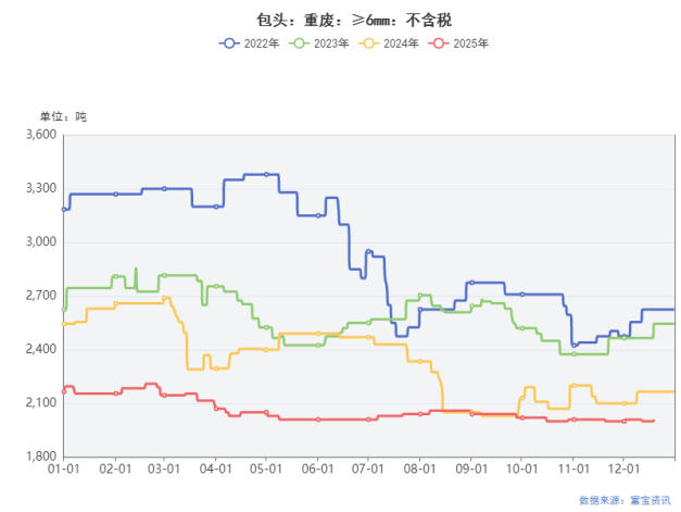 | 报告品种:螺纹钢 原文链接:https://mp.weixin.qq.com/s/qSYyde3wWD7qZzM7CbAFgQ 2025即将过去,回顾25年内蒙古废钢市场价格,以包头重废6mm厚为例,似乎陷入了长久的“安眠期”。再看钢厂价格,以亚新钢厂二级重废≥10mm为例,25年最大价差波动区间仅200元/吨。而造成这一现象的原因是什么呢?按往年同期都在疯狂拉涨废钢的价格的钢厂来说,在过年前能否从“安眠期”醒来,给废钢商家一个惊喜呢?