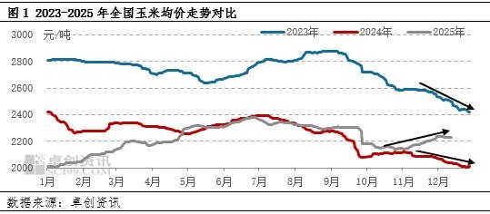 | 【导语】四季度2025/26年度玉米新作上市,价格走势超出市场预期,整体呈现逆势上涨的状态,卓创资讯认为主要原因在于华北新粮质量欠佳且上市推迟、基层农户惜售、进口减量等,总体驱动重心在供应端。2026年一季度市场来看,考虑本年度玉米增产以及前期基层惜售,一季度或出现一定卖压,另外终端养殖持续亏损导致其对于玉米价格接受程度不高甚至寻求替代,预计明年一季度玉米价格或先稳后跌,转折点或出现在3月份。 四季度正是国内玉米新作上市之时,玉米市场走势与往年不同,对比均价来看,2023、2024年的四季度价格出现了不同程度的下跌,而2025年四季度却出现逆势上涨的走势。分析背后成因,卓创资讯认为主要原因在华北新粮上市延期且质量下滑、基层惜售、进口减量、终端存在补库以及刚性需求等,其中驱动逻辑重点主要集中在供应方面。据卓创资讯数据监测,12月18日全国玉米均价是2230.35元/吨,同比去年涨幅10.19%。