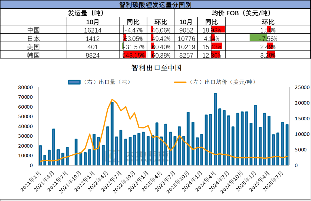 数据来源:SMM 、Ifind、Wind,大地期货研究院 进口:智利9月发运量边际走弱,月出口至中国11101吨,环比-14.49%