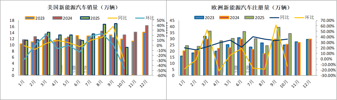 数据来源:Ifind、大地期货研究院 终端需求:美国7月电车销量同环比分别10%/18.8%,欧洲6月同环比21%/19%