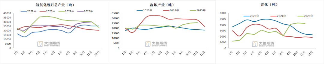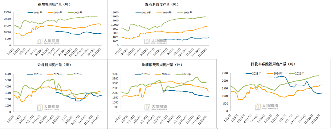 数据来源:SMM 、Ifind、Wind,大地期货研究院 供应:锂精矿:四季度以来锂精矿产销量基本维持稳定