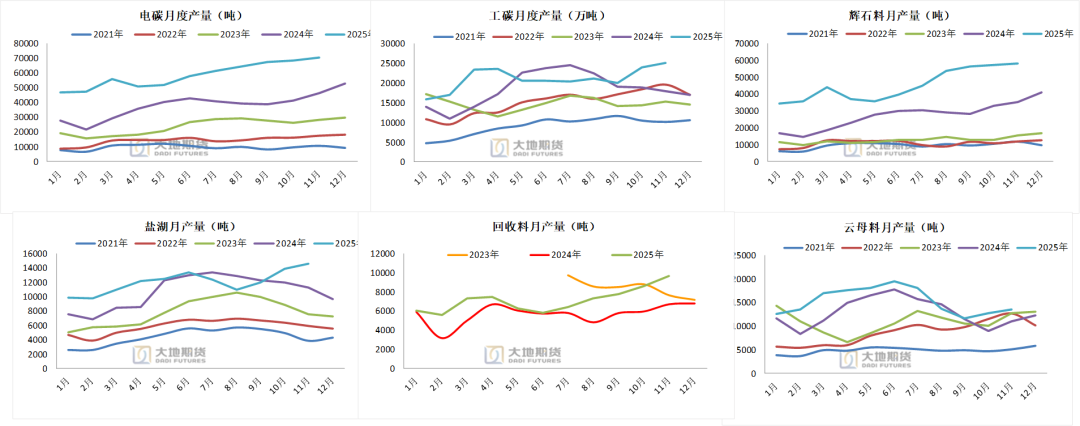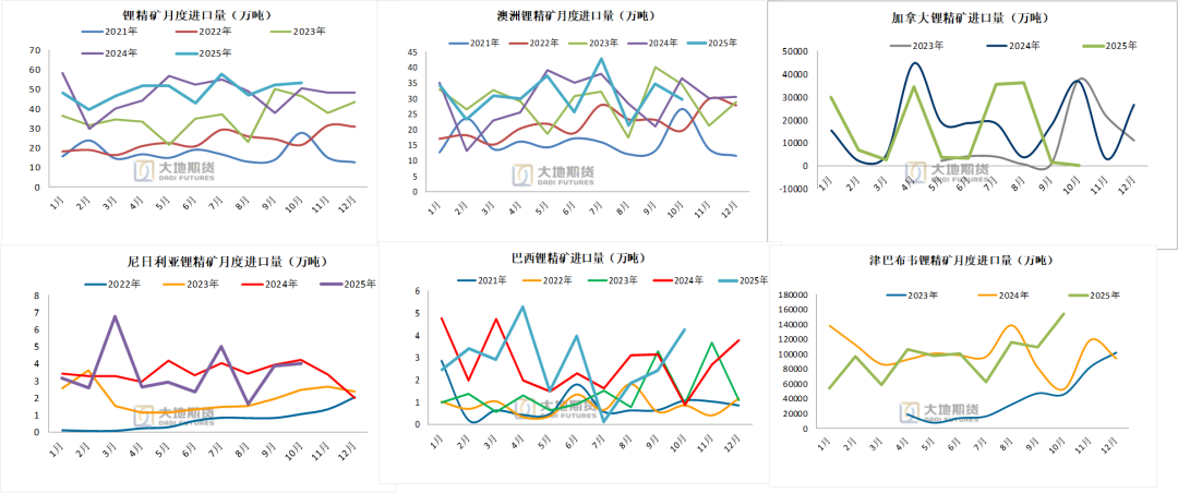 数据来源:SMM、Ifind、Wind,大地期货研究院 常规月度数据 供应:锂精矿:国内锂精矿产量虽小但维持高增速