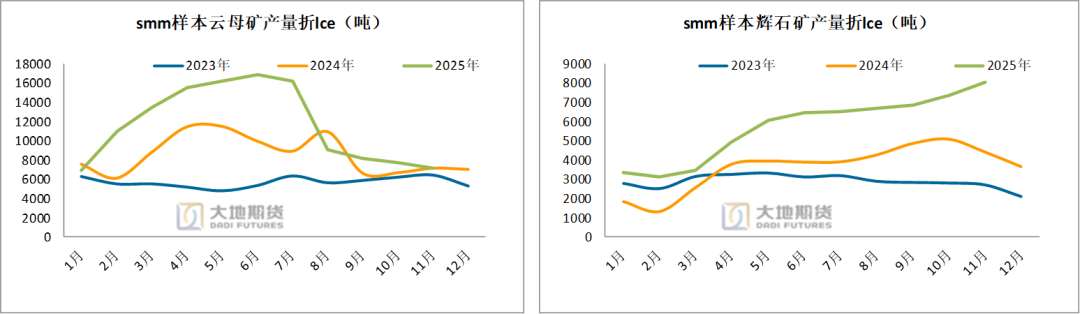 数据来源:SMM 、Ifind、Wind,大地期货研究院 供应:碳酸锂:云母产量边际下滑
