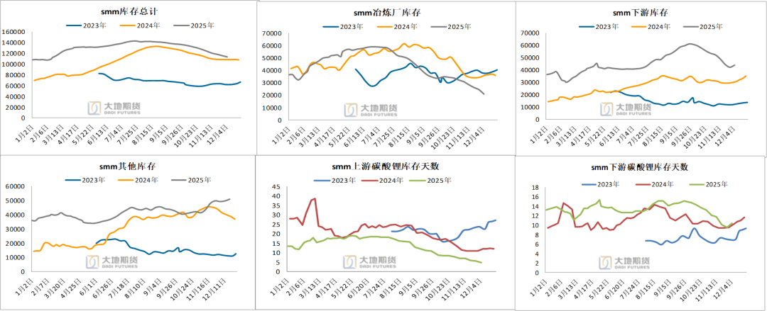 数据来源:SMM、Ifind、Wind,大地期货研究院 碳酸锂库存:去库节奏边际走弱,样本库存11.36万吨,环比-2366吨