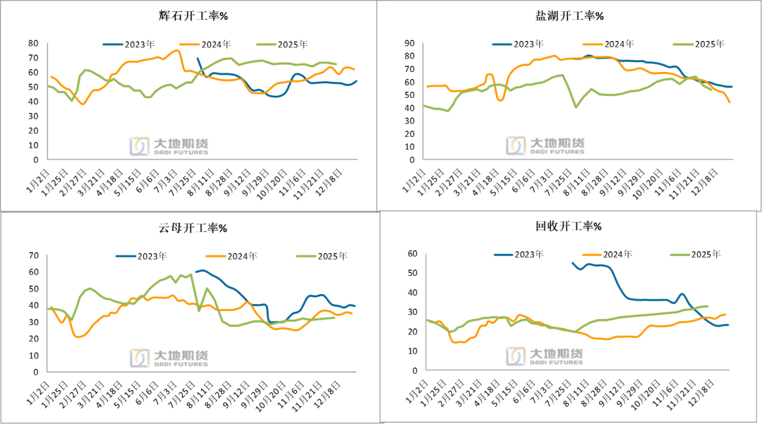 数据来源:SMM、Ifind、Wind,大地期货研究院 周度开工率:辉石工率走平,维持高位,整体产能利用率弹性较大