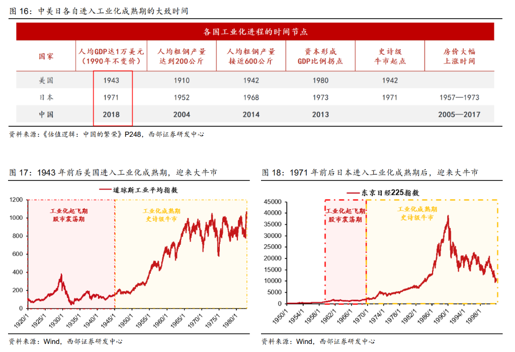 拉长时间看,26 年的中国将重复 1978 年开始的日本股市的道路——这一年日本经济重启复苏,即便 GDP 增速绝对水平不高,但却启动了新一轮长牛。这一点从 8.31《看向新高》 开始,我们便反复提及:康波萧条期,伴随着追赶国进入工业化成熟期,一轮长牛也随之启动。