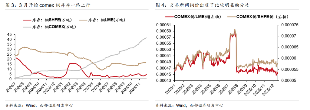 举例而言,今年铜价持续超预期上涨,很大程度上来自于逆全球化带来的“战略库存”需求。特朗普关税的不确定性笼罩全年,因此即便后续特朗普的铜关税取消,COMEX 铜的库存仍然一路上行。与此同时,沪铜的库存维持在极低的水平线上。往26年看,伴随着全球赤字周期的重启,沪铜、伦铜库存也很可能进一步进入上升通道,彼时将进入一轮类 似黄金一样的“抢货”行情。