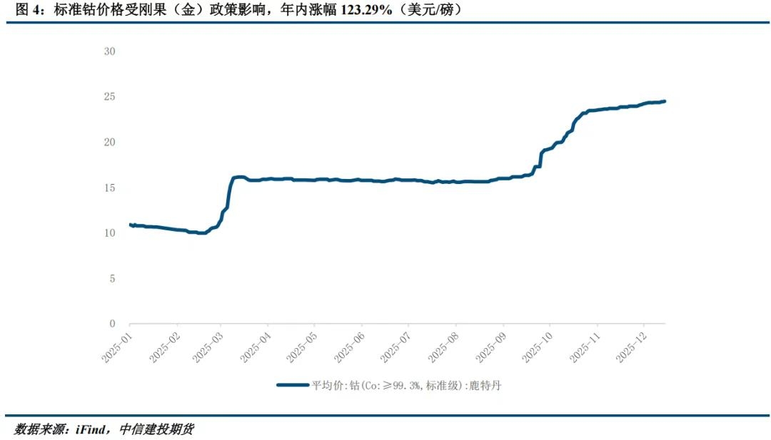 三、钴价值量高,但伴生含量低,预计征税影响有限 印尼计划新修订HPM公式,并对钴等伴生品单独计价并征税。具体计价方式修改以及对钴的单独报价方式我们认为仍有待具体政策出台,目前主要关注对钴征税所带来的成本影响。 2025年钴价受刚果(金)政策影响出现大幅上涨,标准钴价格由年初的10.95美元/磅涨至24.45美元/磅,YTD涨幅123.29%,产品附加值显著提升。由于目前印尼市场既不对钴进行基准报价,也不征收PNBP,因此矿企和冶炼企业可以通过回收钴来实现抵扣收益。