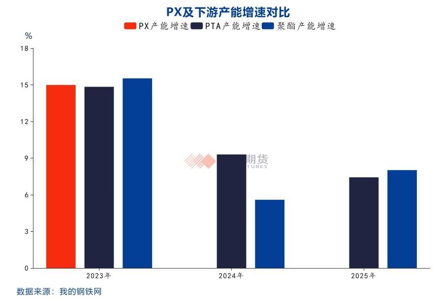 | 上周三PX价格触底反弹,周四收阳线,周五至本周一开始大幅放量增仓上涨,主力2603合约期价从周四的6850元/吨附近拉涨至7294元/吨。下游PTA同步跟涨,持仓量从上周四的不足90万手大幅增加至周二盘中的130万手附近。从基本面看,PX新年度的强预期逻辑比较清晰,将成为产业链重要的上行驱动因素,但短期终端需求走弱,负反馈压力或逐渐显现。 01 PX强势格局显现 PX产能缺口逐年增大。PX上一轮最后一套是2023年中投出的惠州中海油150万吨装置,未来计划投产装置在2026年的年中至下半年。三年无PX新装置投产的过程中,下游PTA和聚酯装置在持续增长。单纯从国内聚酯产能对PX的需求来测算PX-PET的供需变化,可以发现随着聚酯产能的持续增长,PX的产能缺口越来越大。此处仅为理论测算,实际产业链的供需还需要考虑上下游开工率及部分PTA的出口需求。