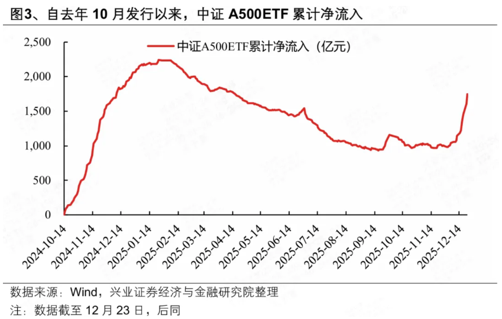 节奏上,12月中旬以来A500ETF净流入明显提速,与资本市场修复共振。
