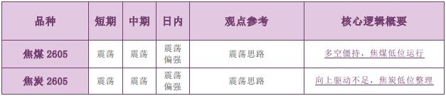 备注: 1.有夜盘的品种以夜盘收盘价为起始价格,无夜盘的品种以昨日收盘价为起始价格,当日日盘收盘价为终点价格,计算涨跌幅度。 2.跌幅大于 1%为弱势,跌幅 0~1%为震荡偏弱,涨幅 0~1%为震荡偏强,涨幅大于 1%为强势。 3.震荡偏强/偏弱只针对日内观点,短期和中期不做区分。 ◼ 主要品种价格行情驱动逻辑—商品期货黑色板块 品种:焦煤(JM) 日内观点:震荡偏强 中期观点:震荡 参考观点:震荡思路 核心逻辑:截至 12 月 26 日当周,全国 523 家炼焦煤矿精煤日均产量 74 万吨,环比下降 1.8 万吨,同比偏低 2 万吨;焦化厂和钢厂焦炭日均产量 109.47 万吨,周环比小幅下降 0.02 万吨。进口方面,12 月截至 20 日,288 口岸累计蒙煤通关 26498 车,环比 11 月的高基数进一步增长23.0%,蒙煤高进口对国内煤价形成压制。供应整体持稳,需求维持低位,焦煤供需格局中性仍偏宽松,使得产业链各环节焦煤均有所累库。整体来看,焦煤基本面无明显利好,但元旦后下游冬储和复产预期给煤价带来一定支持,叠加动力煤持续下跌或引发新一轮供应调节措施,可关注政策端以及下游情况。(仅供参考,不构成任何投资建议) 品种:焦炭(J) 日内观点:震荡偏强 中期观点:震荡 参考观点:震荡思路 核心逻辑:截至 12 月 26 日当周,全样本独立焦化厂和钢厂焦化厂合计焦炭日产量 109.47 万吨,周环比基本持平,小幅下降 0.02 万吨/天;全国 247 家钢厂日均铁水产量 226.58 万吨,焦炭供需均在低位企稳,基本面无明显好转。整体来看,焦炭短期基本面依然疲弱,但需求端预期有所好转,市场多空僵持,期货主力合约暂维持低位震荡运行,关注后续下游生产和采购节奏。(仅供参考,不构成任何投资建议) 责任编辑:七禾小编 |