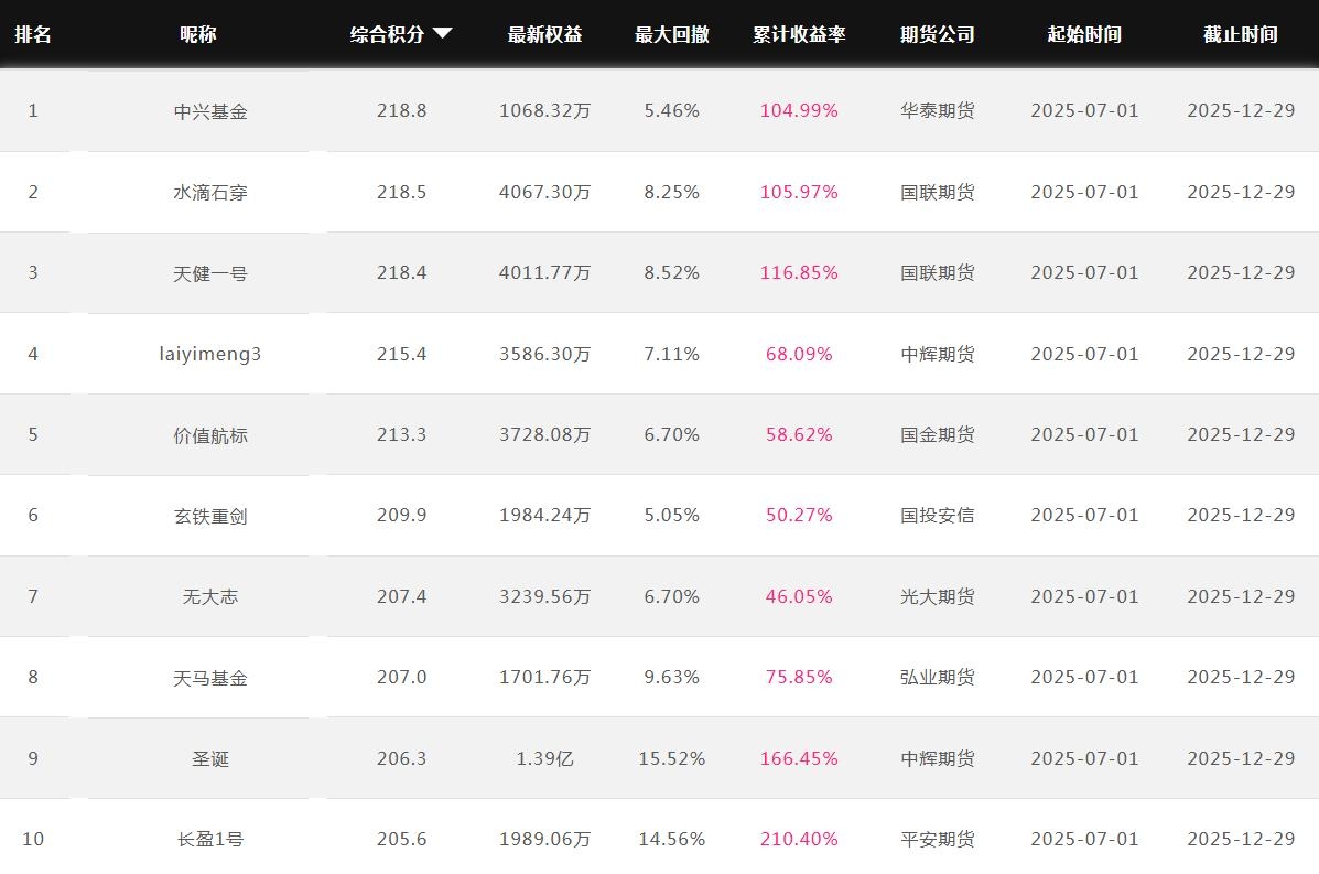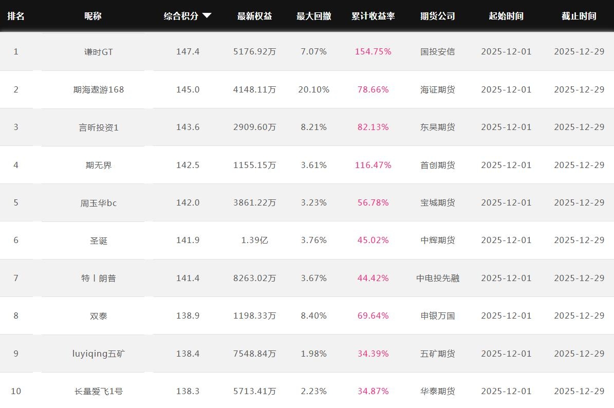 2025年12月【月度排名】(2025年12月1日-12月31日)