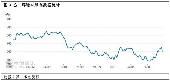 港口到货集中但发货表现尚可库存维持小幅提升 12月中国乙二醇华东港口平均库存水平在58.70万吨(不含宁波港库存数据);月末库存在60.05万吨,较上月末上升6.00万吨。本月张家港主港日平均发货水平在5750吨附近。12月终端服装纺织环节进入淡季,订单逐步下降,但聚酯环节尚未出现大规模停车减产,聚酯开工维持较高水平,港口发货数据表现尚可,在港口到货集中的影响下,12月华东港口库存继续小幅提升。备注:2025年12月起,乙二醇华东港口库存不含宁波港库存数据,月均及环比数据剔除宁波港库存数据计算。