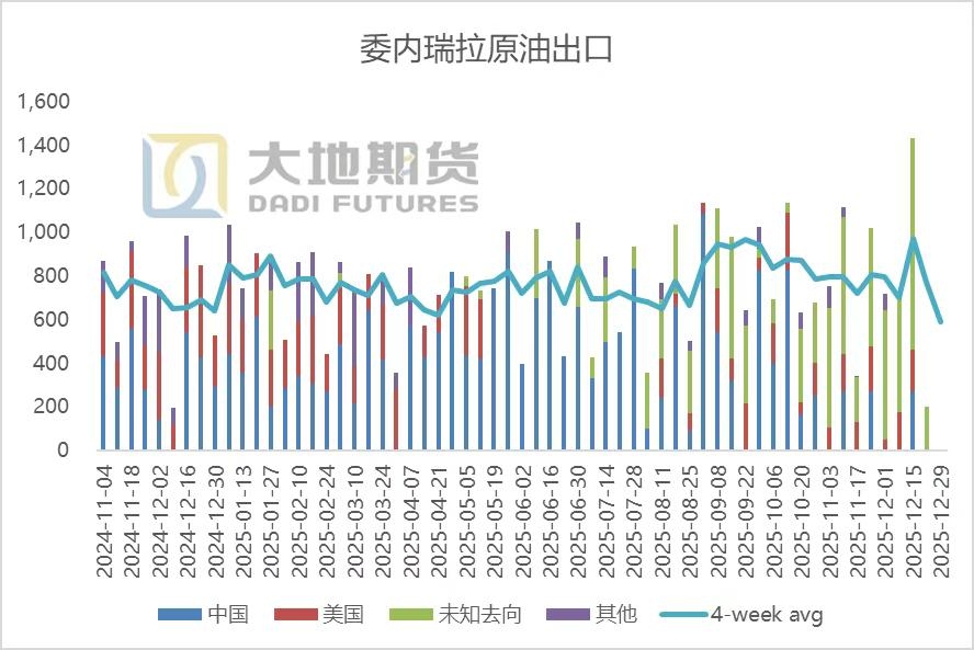 数据来源:大地期货研究院 委内需要积极找买家 美军封锁委内海域后,已接连拦截两艘装有委内原油的油轮。 委内近两周loading量级降至10万桶日以下,且前期很多油轮去向未知,仍未找到可以接受的买家。 “围而不打”的背景下,委内需要继续降价以cover风险溢价。