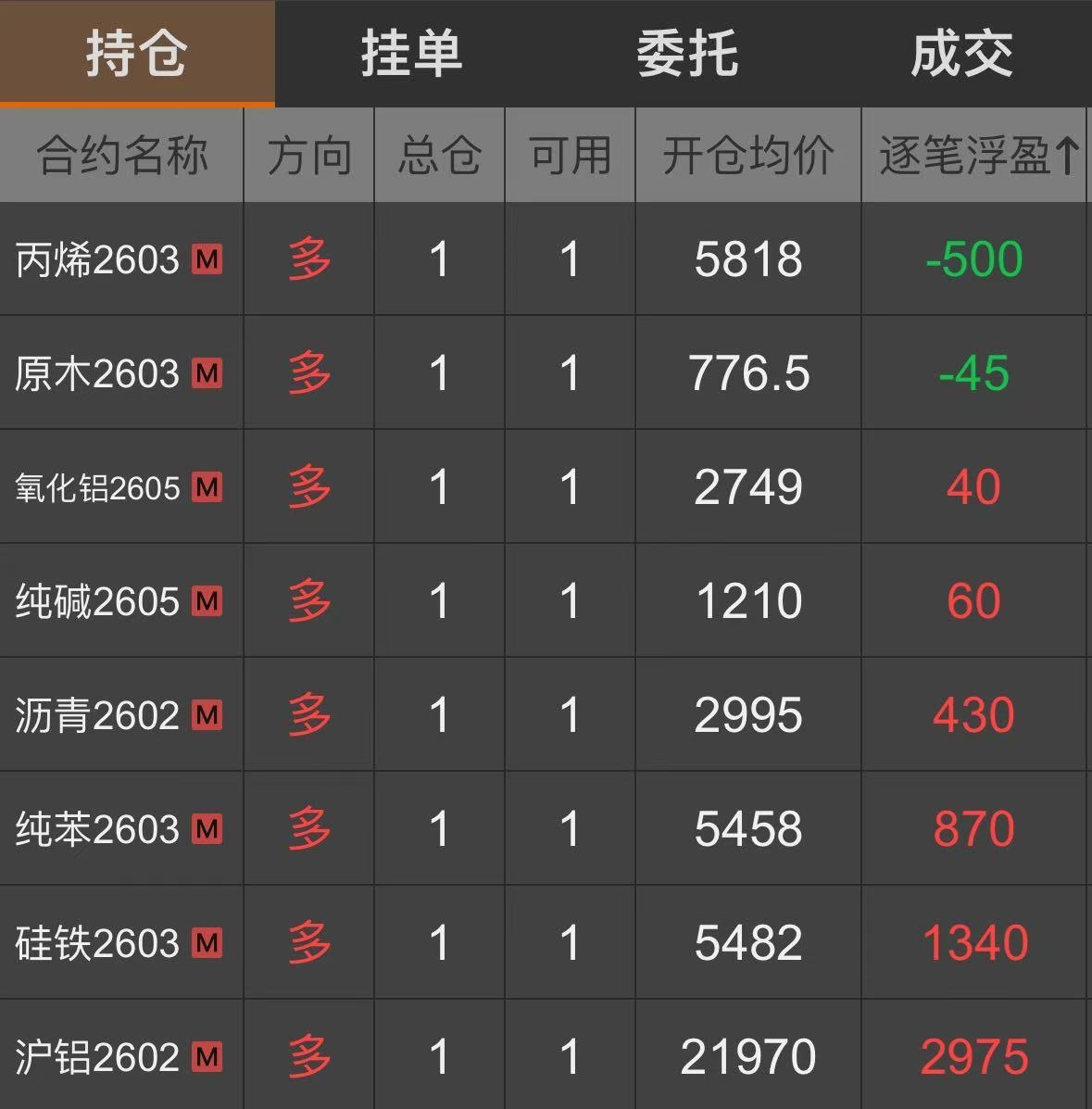 2、持仓截图