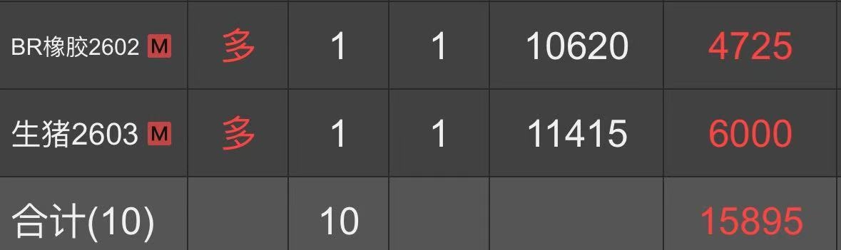 沪铝:2025年12月9日,达到启动点的开仓条件,所以在14:57开多一手沪铝2601合约,开仓价为21775。沪铝2601合约于2025年12月10日21:05移仓至主力合约2602,开仓价为21970。