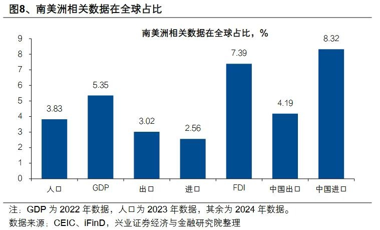 南美地区冲击全球经贸和供应链的风险 “新门罗主义”升温下,南美地区有冲击全球经贸和供应链稳定性的风险。特朗普政府推行的“新门罗主义”,强调美国在西半球的绝对主导地位,明显加大了南美洲的地缘政治风险。其在策略上更倾向于综合施压,而非直接军事介入。美国对委内瑞拉发动全面军事干预的可能性较低,因为直接军事干预成本过高且极易引发区域秩序混乱与国际舆论反弹,其可能更倾向于采取精准打击或秘密行动等有限手段。同时,美国或将通过代理人干预、升级经济制裁、施加政治压力等多种手段,进一步干预南美地缘格局。一方面,美国可能通过经济工具(如关税制裁、削减援助)与政治外交活动(如干预选举),推动地区政治“右转”,塑造有利的地区政治环境;另一方面,美国通过加强在区域的军事存在与合作,将拉美视为其国家安全与供应链韧性的关键延伸,迫使拉美各国在供应链安全、关键矿产控制等领域向其靠拢。这带来的地缘政治动荡将冲击全球贸易与供应链的稳定性。作为全球重要的粮食、矿产及能源供应地,南美局势的不稳定将直接扰动大宗商品市场。美国强制南美国家明确站队的压力,或将削弱南美与其他主要经济体的合作,并推动全球产业链出现基于政治考量的调整,进而增加全球贸易和产业链风险。